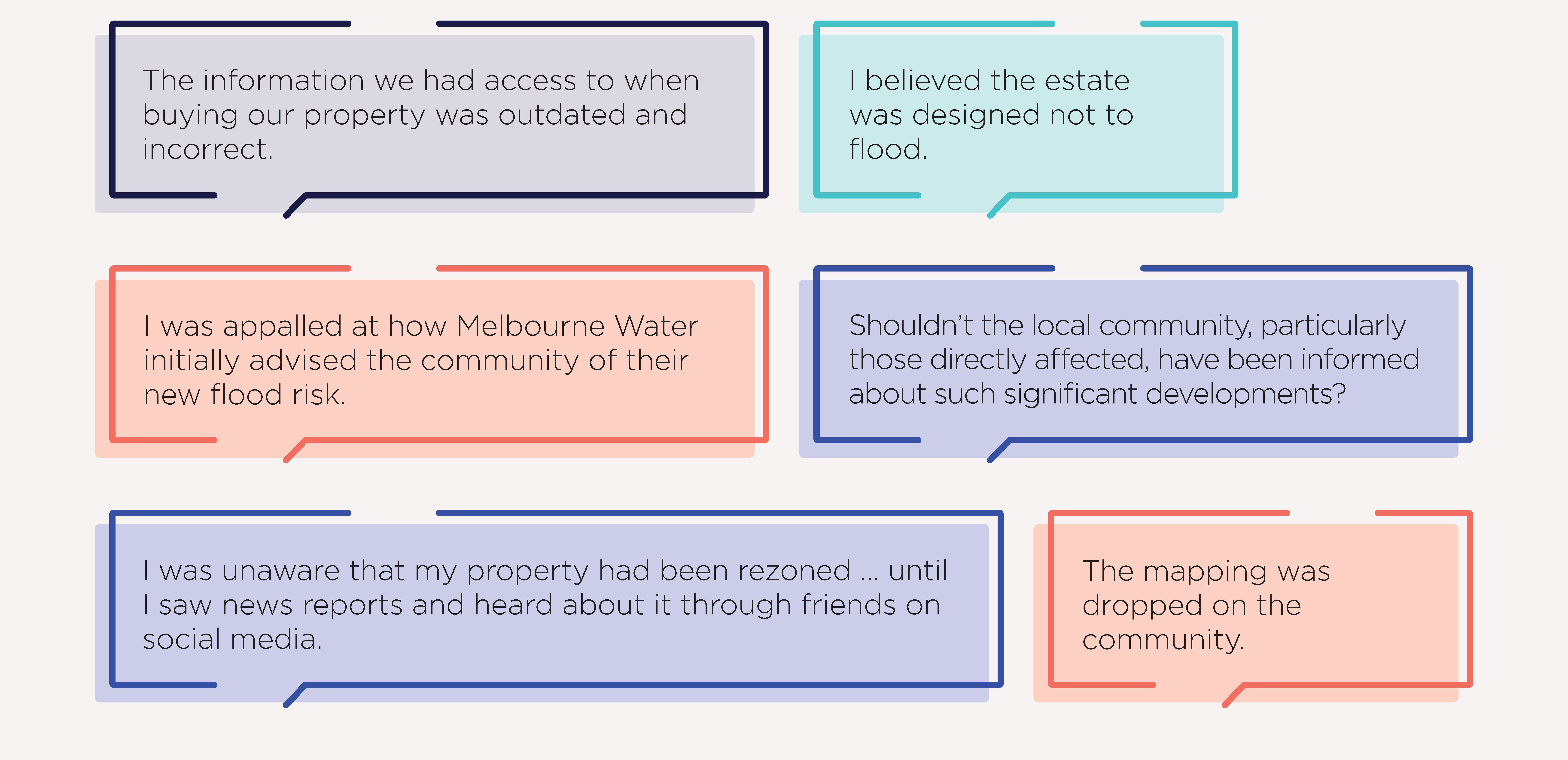 Submissions helped us understand how people are impacted by flooding and flood-related planning decisions, and how these decisions are made.